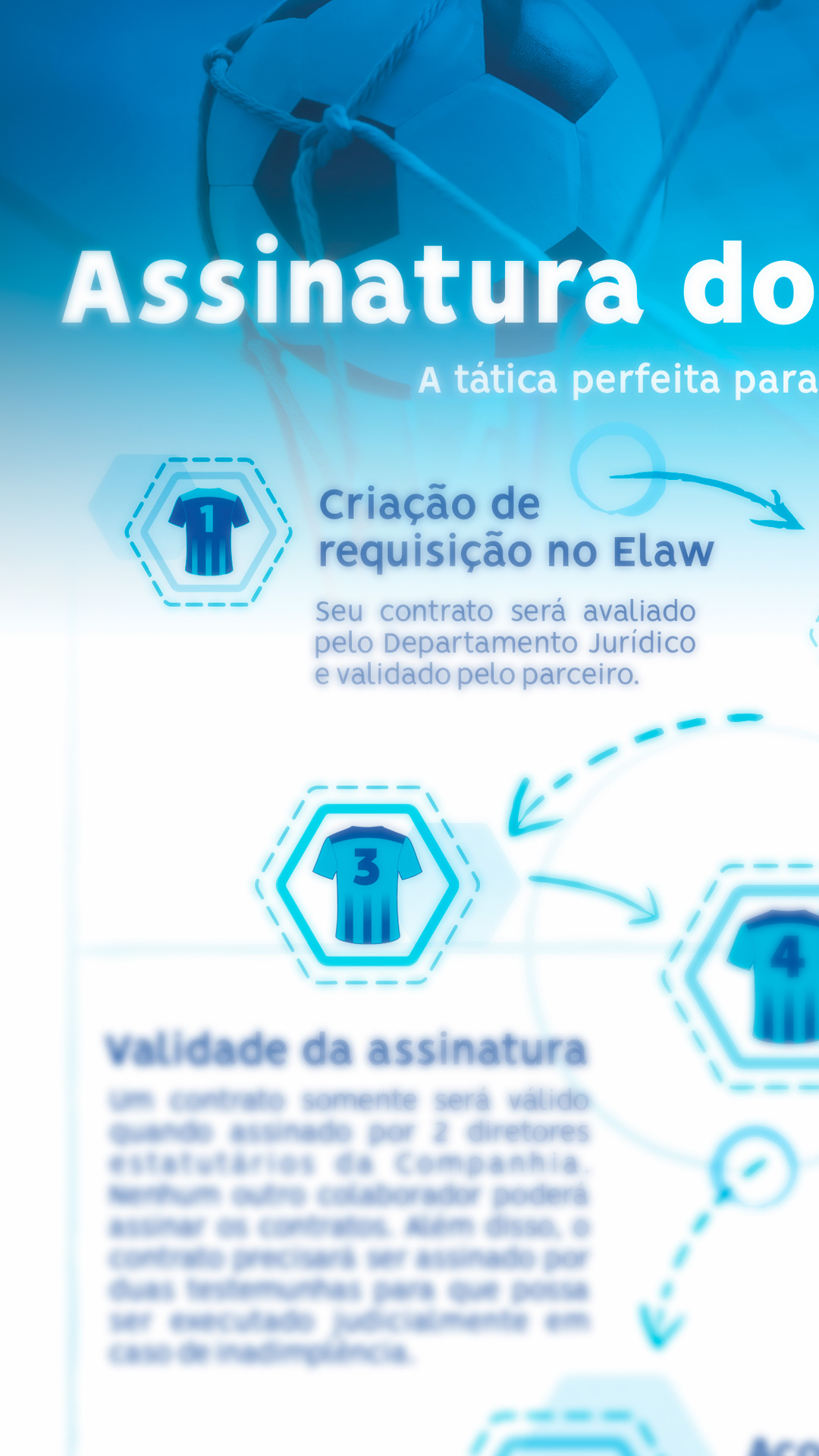Transformar um tema jurídico em um assunto de fácil entendimento, conceitualmente criativo e visualmente interessante, é sempre desafiador. Neste caso, a união entre futebol com as regras jurídicas e de compliance, foi a solução perfeita considerando o timming do evento, que aconteceu no mesmo período da Copa do Mundo FIFA 2022, realizada no Qatar. Com criação de e-mails, peças e conteúdos para intranet.